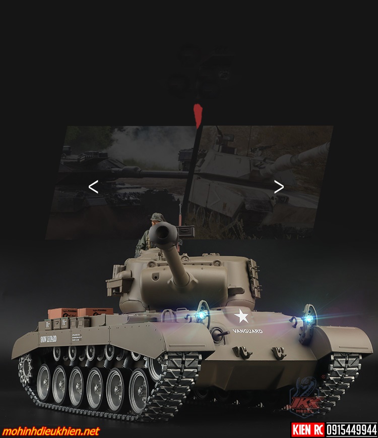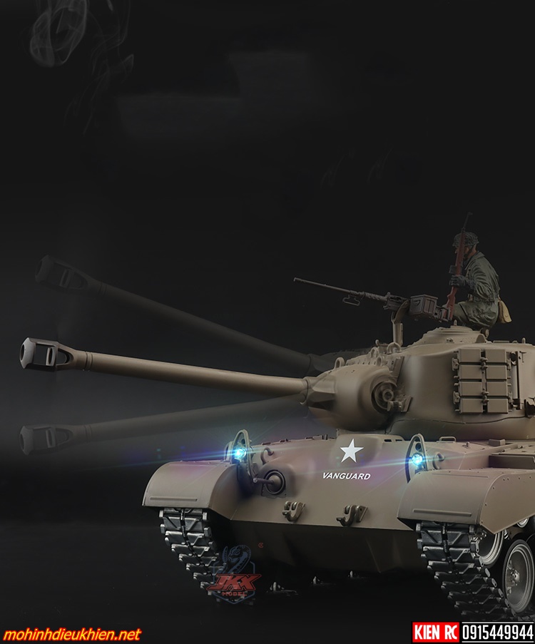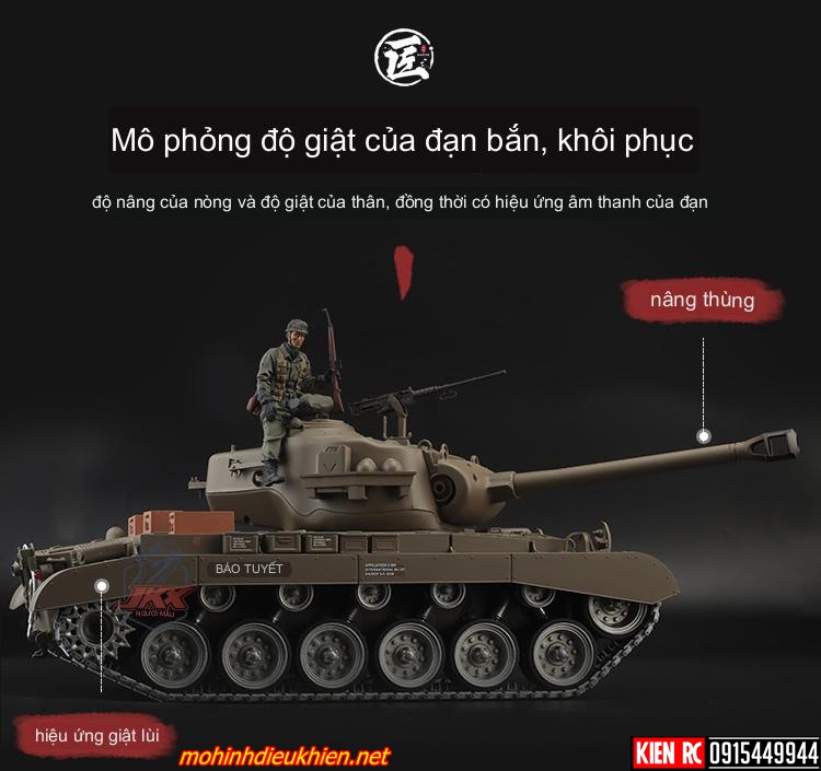 Tính năng & Vận hành Chạy điện với mọi chức năng hoàn toàn y như một chiếc xe tăng thật, kể cả khả năng vượt địa hình và bắn súng. Xe trang bị hệ thống bánh xích, cho phép leo trèo tốt và lái y xe tăng thật, nghĩa là có thể chạy tới, lùi và quay vòng 380o cực nhanh. Tháp pháo cũng vận hành bằng motor và quay 360o. Súng đại bác nâng lên và hạ xuống bằng điện. tất cả vận hành thông qua điều khiển trên remote. Xe tăng của hãng HENGLONG có ưu thế ở việc tích hợp 1 khẩu súng hơi chạy bằng điện có thể bắn đạn liên tục tạo cảm giác trung thực và rất phấn khích. Ngoài ra, xe còn có 1 bộ mạch giả lập điện tử phát ra tiếng máy, tiếng "gầm" và tiếng súng đại liên y như thật (VIVID SIMULATION OF ACTION OF ACTUAL BATTLE TANK)