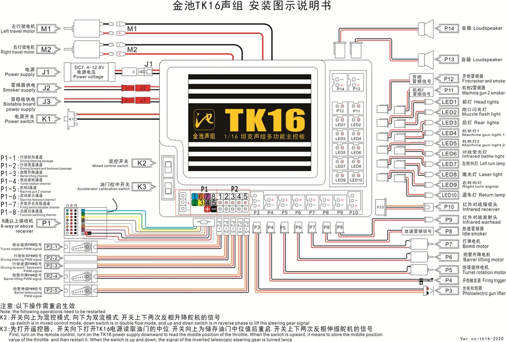 P2: Xoay tháp pháo. Nâng thùng. Kính thiên văn thùng. Lái xe ổ cắm tín hiệu ESC
