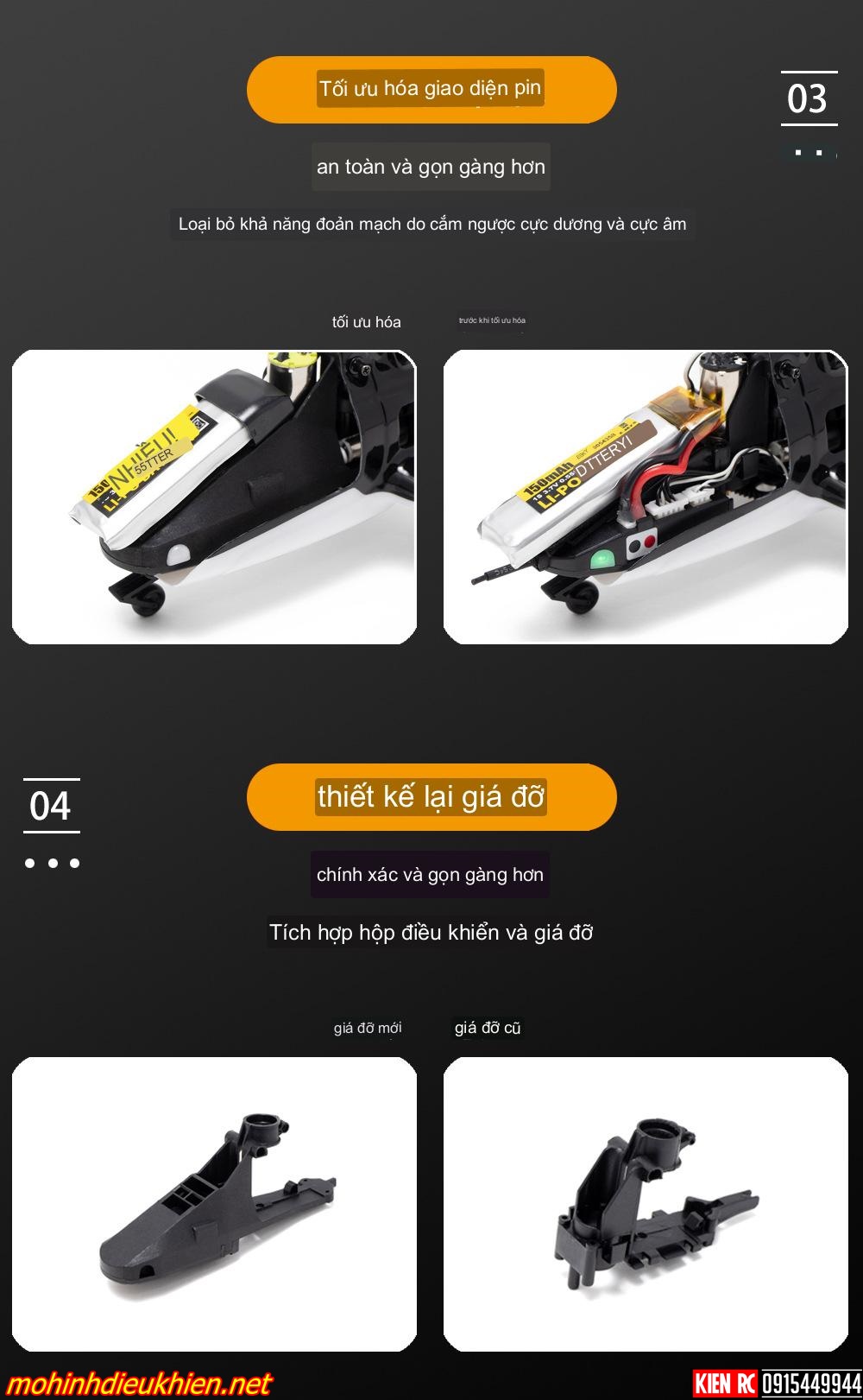 Nâng cấp cấu trúc máy bay 2: Cấu trúc bên trong của đầu quay được sửa đổi và thiết kế để phù hợp hơn và các bộ phận được tinh chỉnh hơn (quy trình sản xuất hàng loạt cần được lắp ráp bằng kính lúp) và độ vừa vặn tốt hơn. vòng quay mượt mà hơn và hiệu suất bay tốt hơn.