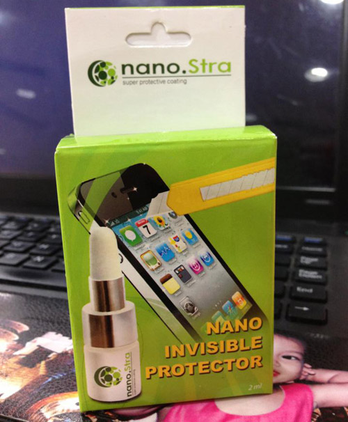 Sau khi hoàn thành công đoạn, anh Hiếu liền thao tác thử độ bền mặc dù chủ nhân ngồi cạnh đang “nín thở” bởi lo “màn biểu diễn” sẽ gây xước chiếc điện thoại đắt tiền. Vẫn là những bài quen thuộc như di thử lên bề mặt bằng chìa khóa xe máy hay đổ nước lên trên đều cho ra kết quả “trơn tuột” và bề mặt máy không hề bị ảnh hưởng. Cũng theo anh Hiếu, dung dịch nano này được tạo nên từ công nghệ phức hợp nano của Mỹ do Singapore sản xuất. Ưu điểm của công nghệ tráng nano là độ trong suốt sáng bóng như pha lê rất dễ nhìn. Các thao tác trên màn hình cảm ứng nhạy hơn so với khi dùng miếng dán bảo vệ màn hình.