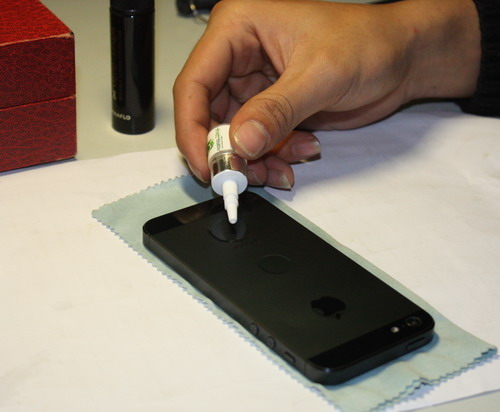 Trong khi đó, các công đoạn thực hiện lại không quá phức tạp. Nói rồi, anh Hiếu nhanh chóng thao tác trên một chiếc iPhone 4S mới coóng mà chủ nhân là một cô gái trẻ xinh đẹp. Trước tiên, chủ cửa hàng tiến hành lau sạch màn hình bằng một chiếc khăn vải mềm rồi dùng máy sấy tóc sấy qua cho hết ẩm. Dung dịch nano được nhỏ từ một lọ màu trắng trông gần giống với lọ thuốc nhỏ mắt. Vừa tỉ mẩn thực hiện, anh Hiếu vừa giảng giải: “Nhỏ thứ này không tham được vì lớp nano dày quá sẽ khó tráng lên màn hình. Chỉ cần 2 giọt, rồi thoa lên khắp mặt màn hình là đủ độ phủ. Nếu thời tiết nắng nóng thì chỉ cần chờ khoảng 5 – 7 phút cho khô màn hình, rồi dùng khăn sạch lau lại cho lên nước bóng. Nếu thời tiết rét đậm như mấy ngày nay thì phải cần tới sự trợ giúp của máy sấy”.