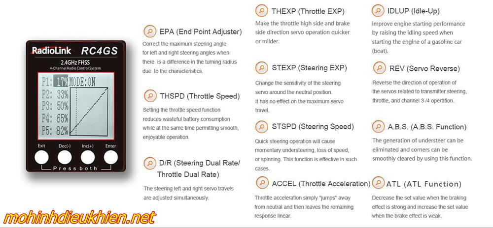 Tay điều khiển Radiolink RC4GS - Điều khiển từ xa sóng mạnh dành cho xe và cano - 2.4G 4CH FHSS