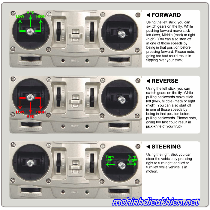 Nhấn vào đây để xem làm thế nào đẻ thay đổi 3 tốc độ hoạt động trên chiếc xe này.