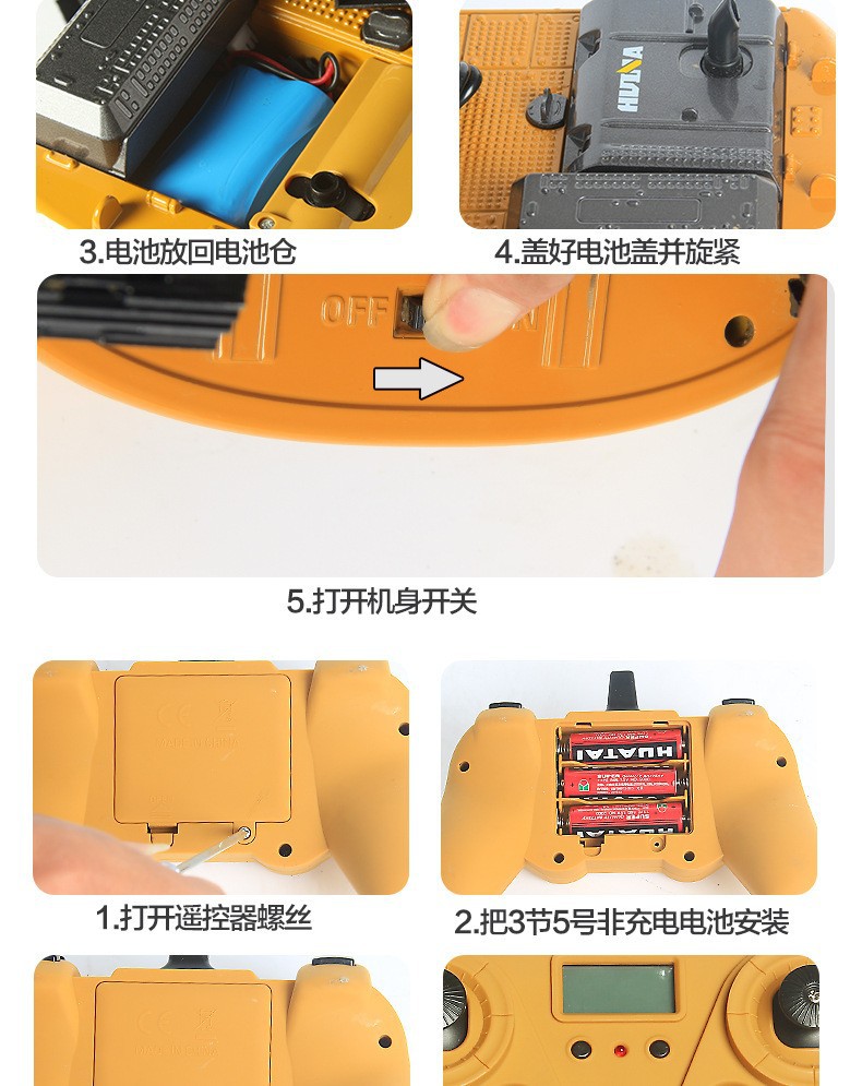 - Khớp cánh tay xe mạnh mẽ, thực hiện mọi chức năng như một chiếc xe thực sự nâng lên/hạ xuống dễ dàng, cào đất, xúc đất / kẹp gắp đá, gỗ / khoan đục bê tông.