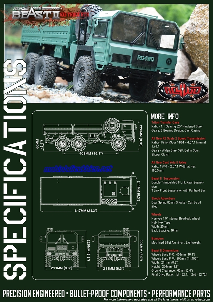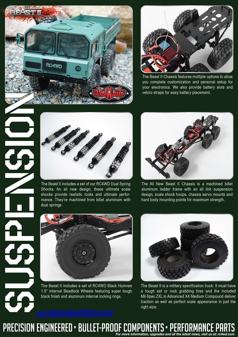 The Beast II có chi tiết quy mô chưa từng có, cho phép cho một mô hình thực tế hoặc một hiệu suất theo định hướng xe tải 6x6 đường mòn đúng.
