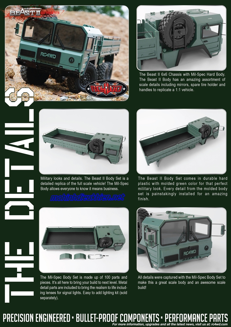 ngoại hình quân sự và chi tiết. The Beast II Body Set là một bản sao chi tiết của xe quy mô toàn! Mil-Spec Body cho phép mọi người biết nó có nghĩa là kinh doanh.