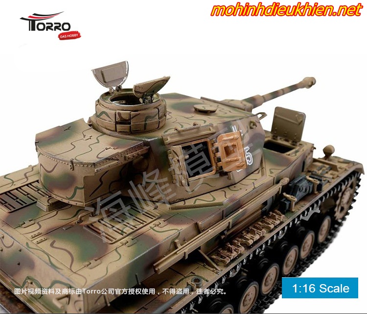 Xe tăng điều khiển từ xa TORRO PANZER IV có khung vỏ được thiết kế tinh xảo, tỉ mỉ, được làm từ vật liệu cao cấp, chắc chắn, các đường nét rõ ràng nhìn như một chiếc xe tăng thật