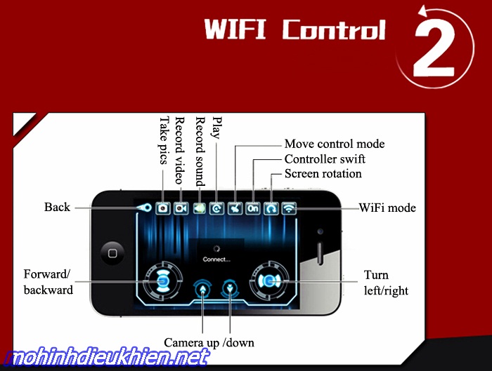 loại điều khiển từ xa: điều khiển wIFI không dây, G - cảm biến
